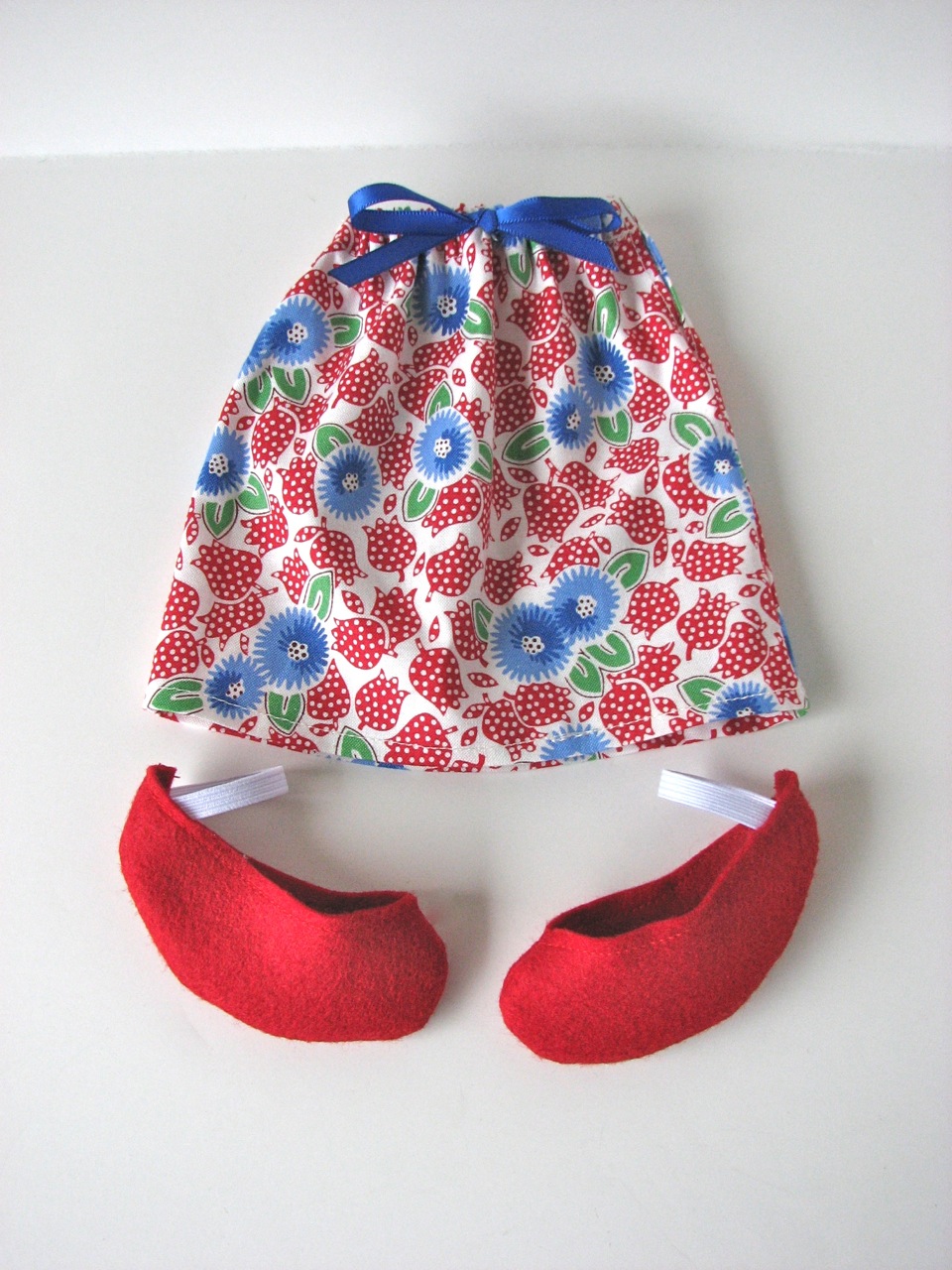For the shoe pattern, I substituted the ribbon ties with a piece of 1/4 inch wide elastic that is approximately 3 1/4 inches long. It worked fantastically and the shoes are fairly easy to slip on and off.